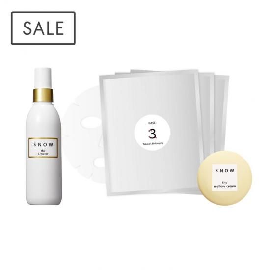 ハイコンセントレートマスク(3枚)、the C water、NEW the mellow cream(ザ メロウクリーム)moist合わせて通常21,890円(税込)のところ19,800円(税込)でお買い求めいただけるお得な「保湿対策セット」を期間限定販売いたします。(※こちらのページからのご購入のみ割引になりますのでご注意ください。)